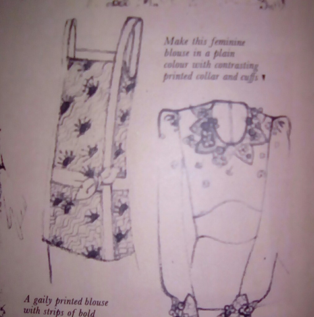 Make this feminine blouse in a plain colour with contrasting printed collar and cuffs.